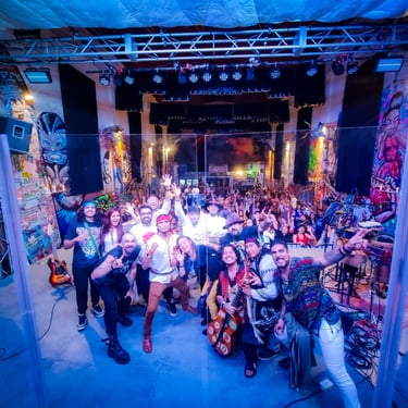 Creamos espacios —desde encuentros íntimos hasta conciertos en foro y festivales— donde el canto, el ritmo y la palabra se convierten en herramientas de conexión profunda con la tierra, el corazón y la comunidad.